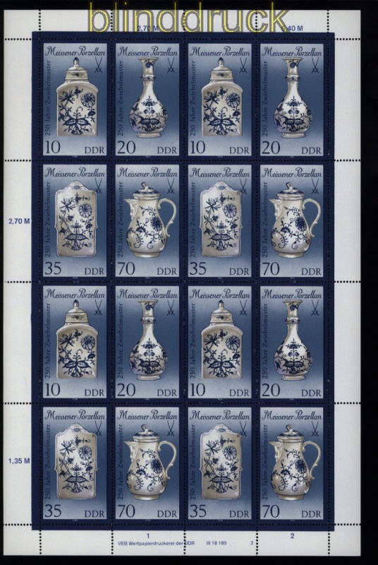 Deutsche Demokratische Republik Mi # 3241 II/44 II postfrisch kompletter Zusammendruckbogen Meißener Porzellan (III) kompletter Zusammendruck-Bogen postfrisch einwandfreie Erhaltung siehe Scan