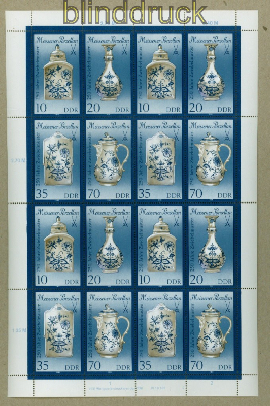 Deutsche Demokratische Republik Mi # 3241 II/44 II postfrisch kompletter Zusammendruckbogen Meißener Porzellan (III) kompletter Zusammendruck-Bogen postfrisch einwandfreie Erhaltung siehe Scan