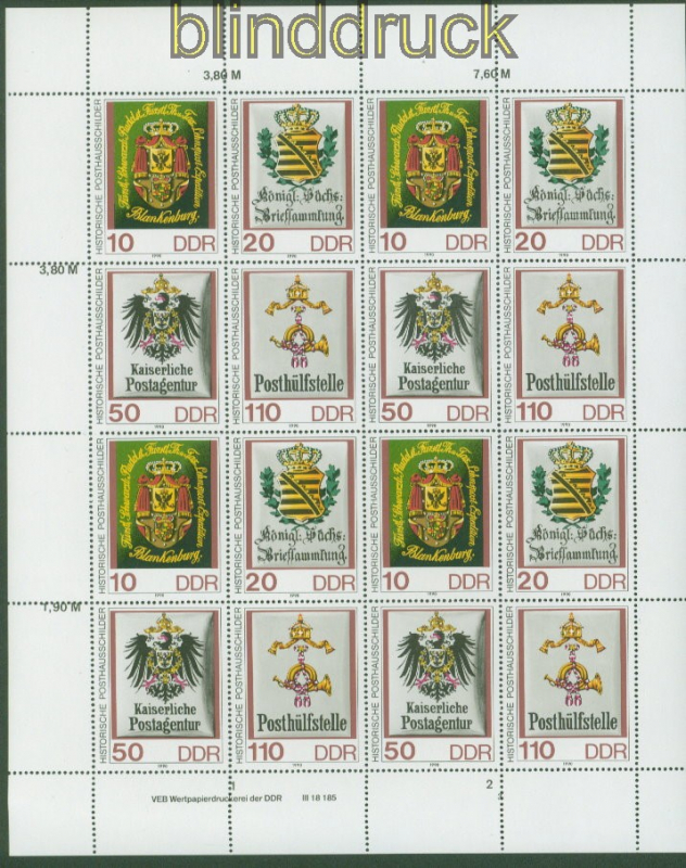 Deutsche Demokratische Republik Mi # 3306/09 postfrisch kompletter Zusammendruckbogen Historische Posthausschilder kompletter Zusammendruck-Bogen postfrisch einwandfreie Erhaltung siehe Scan