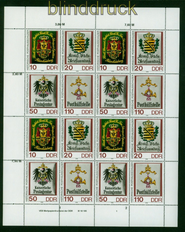 Deutsche Demokratische Republik Mi # 3306/09 postfrisch kompletter Zusammendruckbogen Historische Posthausschilder kompletter Zusammendruck-Bogen postfrisch einwandfreie Erhaltung siehe Scan