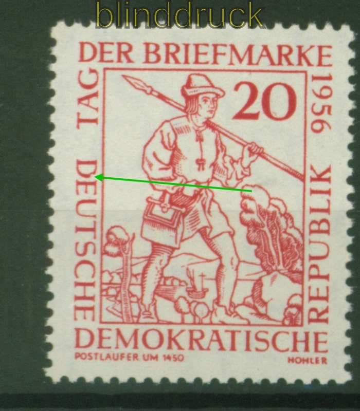 Deutsche Demokratische Republik Mi # 544 III postfrisch Tag der Briefmarke 1956 Plattenfehler Plattenfehler III: D von Deutsche rechts gebrochen postfrisch Erhaltung siehe Scan