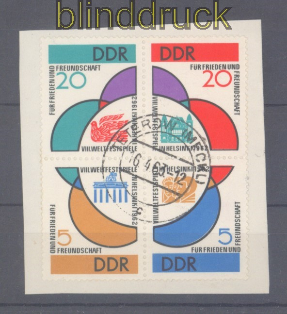 DDR Mi # 901/04 4er-Block Tagesstempel Briefstück Weltfestspiele Jugend (50542)