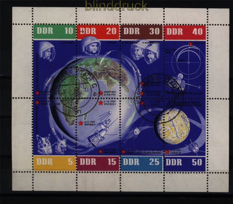 Deutsche Demokratische Republik Mi # 926/33 gestempelt sowjetische Weltraumflüge Tagesstempel 5 Jahre sowjetische Weltraumflüge Kleinbogen entwertet mit Tagesstempel Karl-Marx-Stadt 5.3.1963 einwandfreie Erhaltung siehe Scan