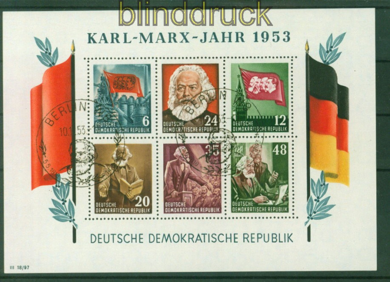 Deutsche Demokratische Republik Mi # Block 8 A Sonderstempel SSt. Marx-Block gezähnt Marx-Block gezähnt Sonderstempel Erhaltung siehe Scan
