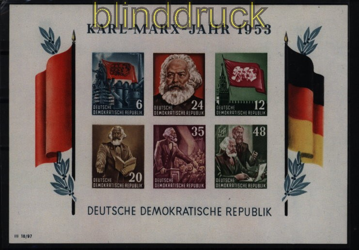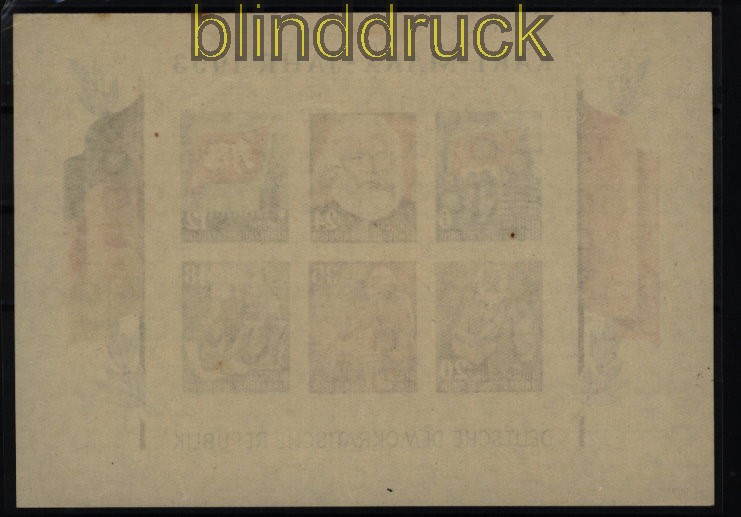 Deutsche Demokratische Republik Mi # Block 8 B postfrisch Marx-Block geschnitten Marx-Block geschnitten postfrisch mit Braunfleck oben am Rand Erhaltung siehe Scan