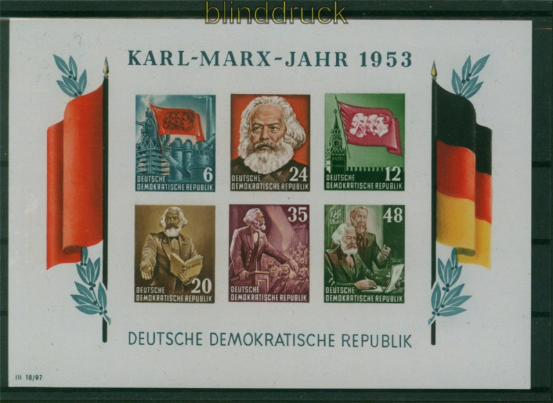 Deutsche Demokratische Republik Mi # Block 8 B postfrisch Marx-Block geschnitten Marx-Block geschnitten postfrisch Erhaltung siehe Scan