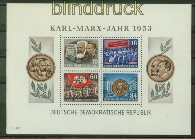 Deutsche Demokratische Republik Mi # Block 9 A postfrisch Marx-Block gezähnt Marx-Block gezähnt postfrisch Erhaltung siehe Scan