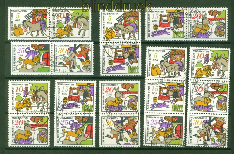 Deutsche Demokratische Republik Mi # 1717/22 Zusammendrucke Zd 260 bis SZd 121 gestempelt Märchen (VI) Die Bremer Stadtmusikanten komplette Zusammendruck-Garnitur gestempelt Tagesstempel einwandfreie Erhaltung siehe Scan