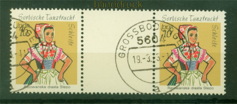 Deutsche Demokratische Republik Mi # 1723/24 gestempelt WZ 13 I Sorbsiche Trachten waagerechte Zwischensteg ohne Siegel Tagesstempel nicht gefaltet seltener Zusammendruck mit einem hohen Katalogwert Erhaltung siehe Scan