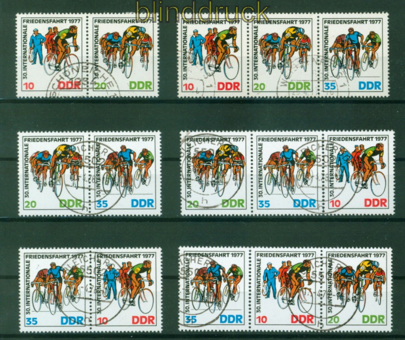 Deutsche Demokratische Republik Mi # 2216/18 gestempelt WZd 343/48 Radfernfahrt Internationale Radfernfahrt für den Frieden Warschau - Berlin - Prag komplette Zusammendruck-Garnitur Tagesstempel einwandfreie Erhaltung siehe Scan