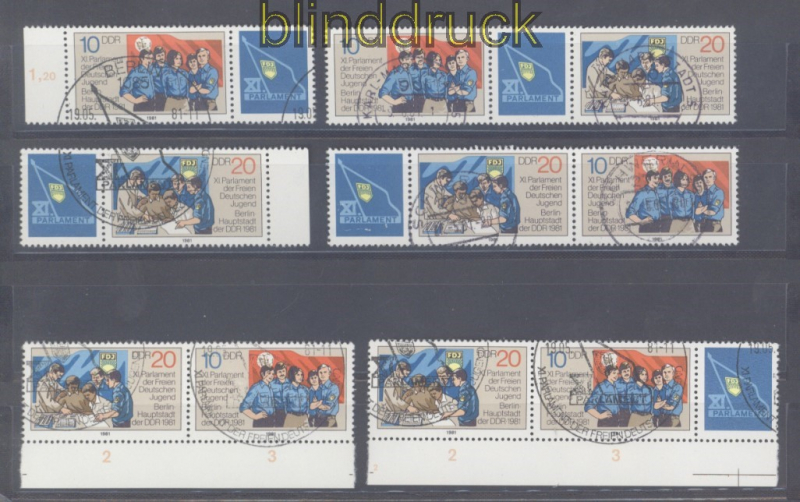 Deutsche Demokratische Republik Mi # 2609/10 gestempelt WZd 493/98 Parlament der FDJ Parlament der freien Deutschen Jugend (FDJ) komplette Zusammendruck-Garnitur gestempelt einwandfreie Erhaltung siehe Scan