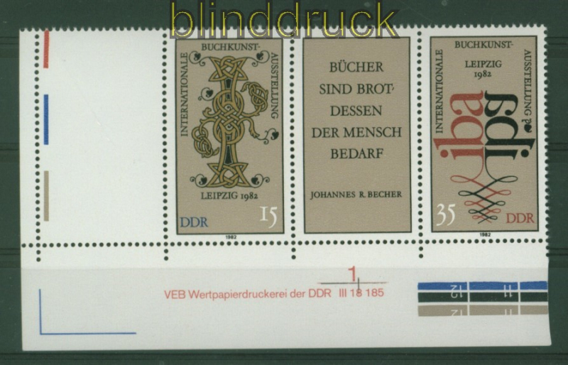 Deutsche Demokratische Republik Mi # 2697/98 Zusammendrucke WZd 529 DV L postfrisch Internationale Buchkunstausstellung (IBA), Leipzig Zusammendruck mit Druckvermerk und Leerfeld postfrisch Erhaltung siehe Scan