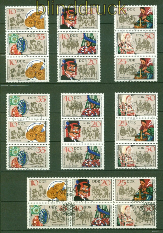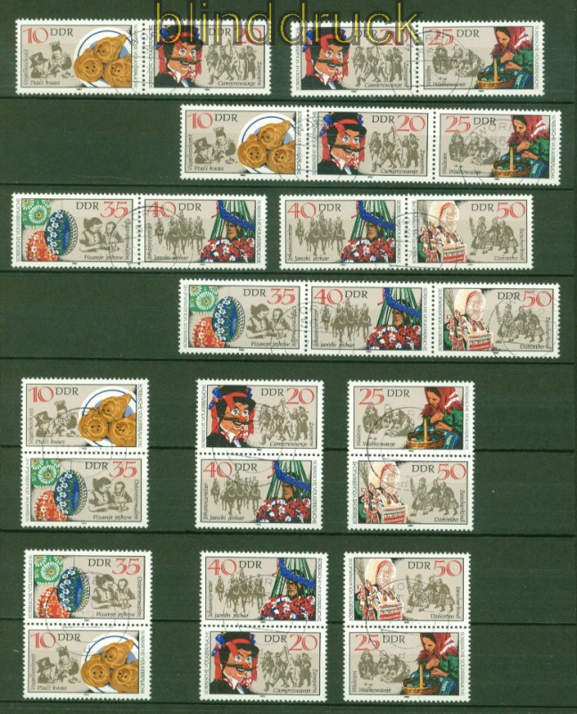 Deutsche Demokratische Republik Mi # 2557/60 Zusammendrucke WZd 467 - SZd 225 gestempelt Sorbische Volksbräuche komplette Zusammendruck-Garnitur gestempelt mit Tagesstempel einwandfreie Erhaltung siehe Scan
