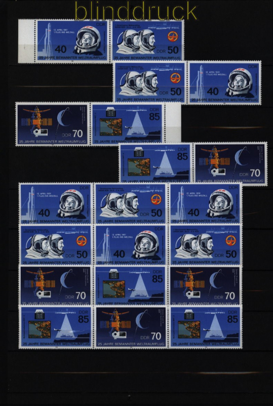 Deutsche Demokratische Republik DDR Mi # 2997/3000 Zusammendrucke WZd 656 - SZd 321 postfrisch 25 Jahre bemannter Weltraumflug komplette Zusammendruckgarnitur postfrisch Erhaltung siehe Scan