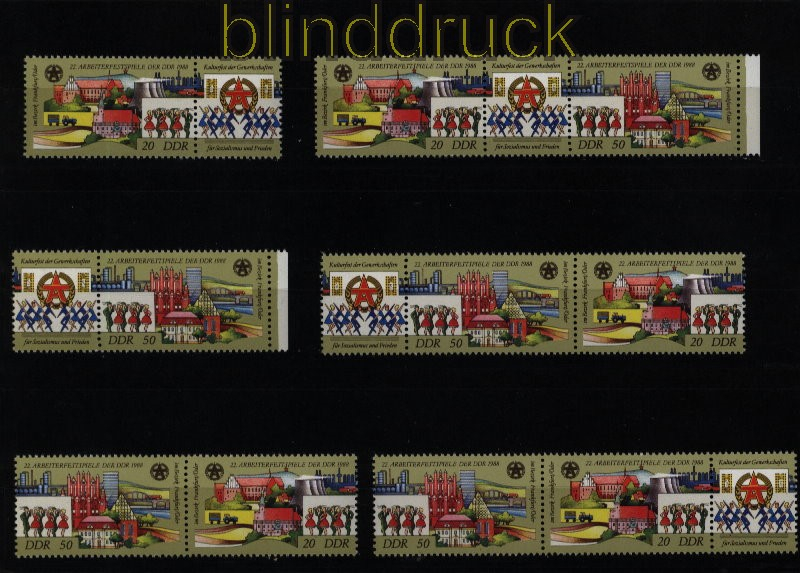 Deutsche Demokratische Republik DDR Mi # 3168/69 Zusammendrucke WZd 741/46 postfrisch Arbeiterfestspiele der DDR, Bezirk Frankfurt/Oder komplette Zusammendruckgarnitur postfrisch Erhaltung siehe Scan
