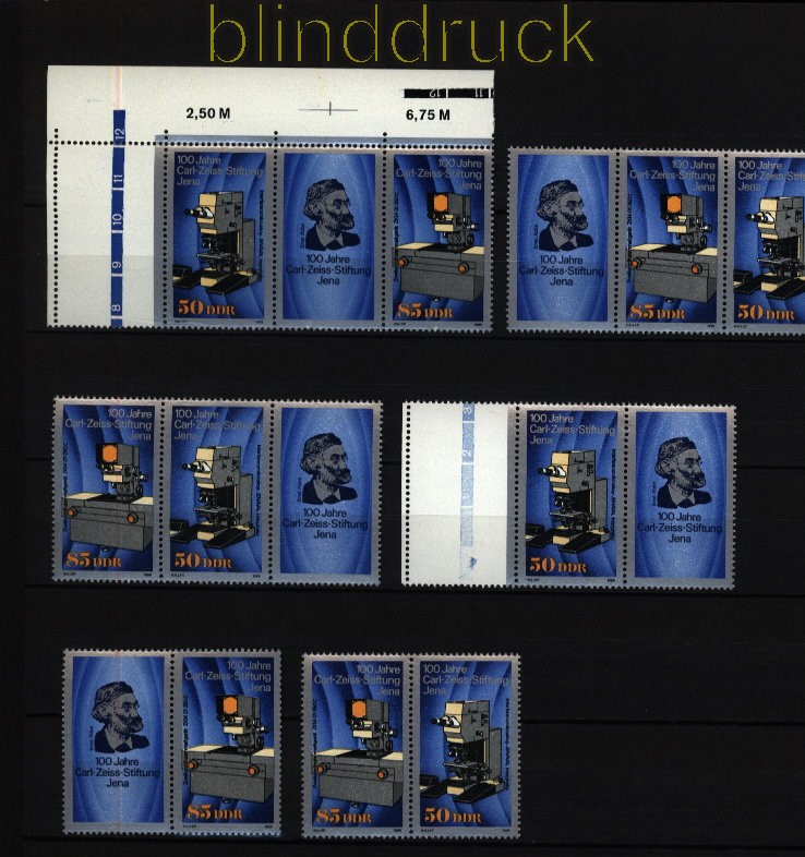 Deutsche Demokratische Republik Zusammendrucke Mi # 3252/53 postfrisch WZd 801/06 Carl-Zeiss-Stiftung 100 Jahre Carl-Zeiss-Stiftung in Jena komplette Zusammendruckgarnitur mit WZd 801 L und WZd 802 L mit anhängendem Leerfeld postfrisch einwandfreie Erhaltung siehe Scan