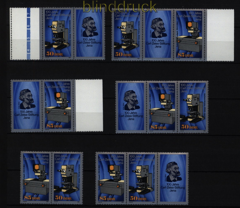 Deutsche Demokratische Republik Zusammendrucke Mi # 3252/53 postfrisch WZd 801/06 Carl-Zeiss-Stiftung 100 Jahre Carl-Zeiss-Stiftung in Jena komplette Zusammendruckgarnitur mit WZd 801 L und WZd 802 L mit anhängendem Leerfeld postfrisch einwandfreie Erhaltung siehe Scan