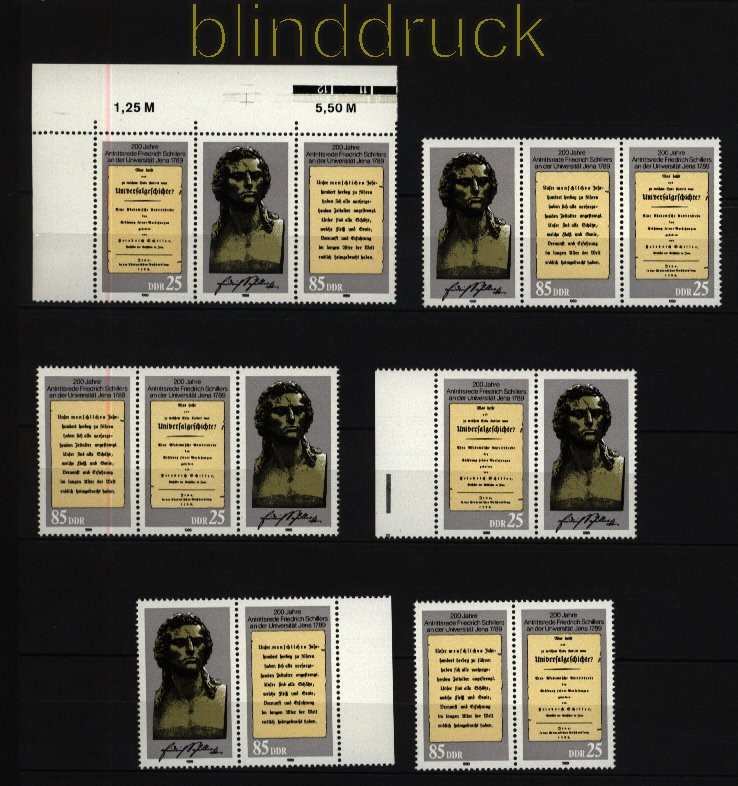 Deutsche Demokratische Republik Mi # 3254/55 postfrisch WZd 807/12 Friedrich Schiller 200. Jahrestag der Antrittsrede Friedrich Schillers an der Universität Jena komplette Zusammendruck-Garnitur postfrisch einwandfreie Erhaltung siehe Scan