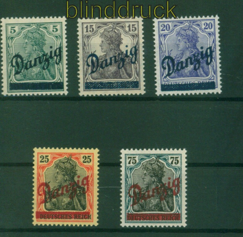 Danzig Mi # 21/25 postfrisch Schrägaufdrucksatz kompletter Satz mit schrägem Aufdruck postfrisch Erhaltung siehe Scan