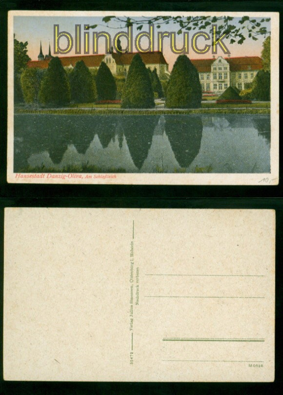 Danzig-Oliva farb-AK Am Schlossteich ungebraucht Karte nicht gelaufen Erhaltung siehe Scan