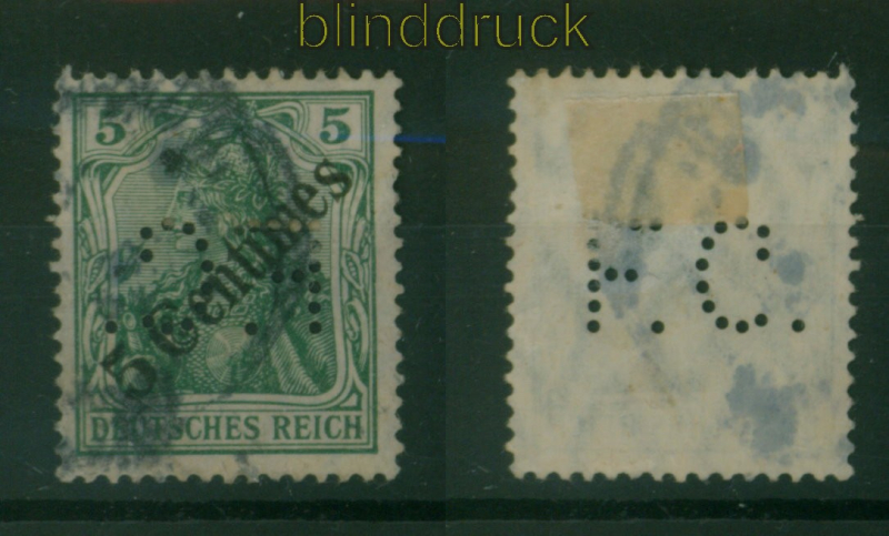 Deutsche Post Türkei Mi # 48 gestempelt mit Perfin Firmenlochung F.C. 5 Pfennig Germania mit Wasserzeichen Rauten schräger Aufdruck gestempelt mit Perfin Firmenlochung F.C. Erhaltung siehe Scan