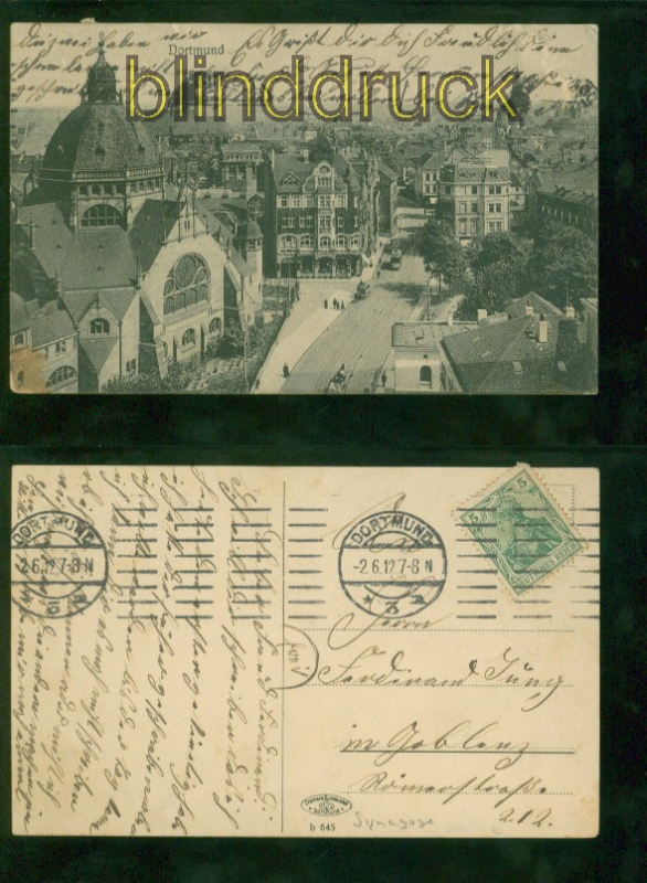 Nordrhein-Westfalen Dortmund sw-AK Teilansicht mit Synagoge 1912 nach Gablonz Karte gelaufen aus Dortmund 2.6.1912 nach Gablonz Erhaltung siehe Scan
