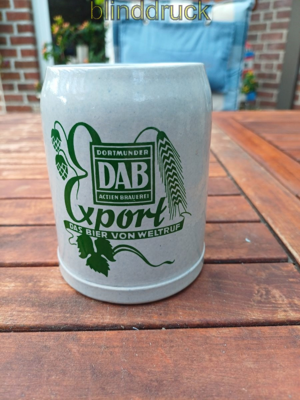 Dortmunder Actien Brauerei DAB alter Bierkrug aus Keramik 0,5 Liter Sammelkrug Export das Bier von Weltruf seltener Krug der Dortmunder Aktien Brauerei mit dunkelgrünem Aufdruck Steinkrug unbeschädigt und offensichtlich nie benutzt Erhaltung siehe Foto
