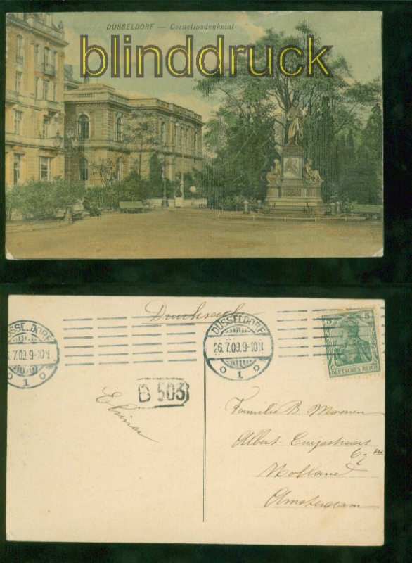 Nordrhein-Westfalen Düsseldorf farb-AK Corneliusdenkmal 1909 nach Amsterdam Karte gelaufen aus Düsseldorf 26.07.1909 nach Amsterdam Erhaltung siehe Scan