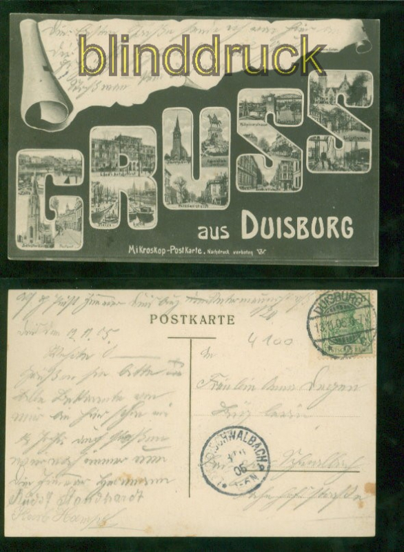 Duisburg sw-AK Gruss aus ..... Mikroskop-Postkarte 1905 Langen-Schwalbach (d9331