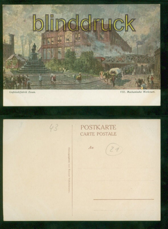 Nordrhein-Westfalen Essen farb-AK Gußstahlfabrik Essen VIII. Mechanische Werkstatt ungebraucht Karte nicht gelaufen Erhaltung siehe Scan