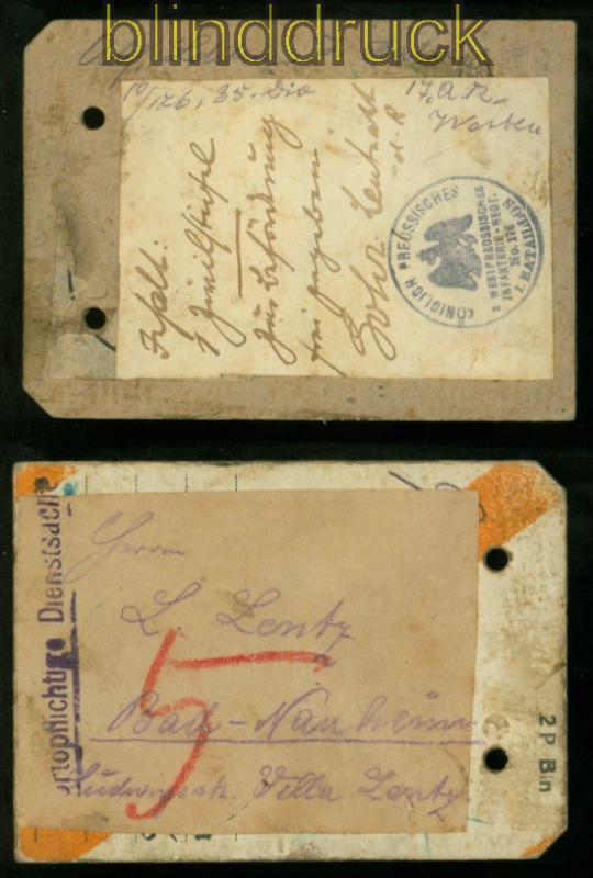 Deutsches Reich Feldpost Paketanhänger portoflichtige Dienstsache Zensur 1912 kleiner Paketanhänger eines Soldaten Inhalt des Pakets ein Stiefel mit Zensur zur Beförderung freigegeben 1912 nach Bad Nauheim wird selten angeboten Erhaltung siehe Scan