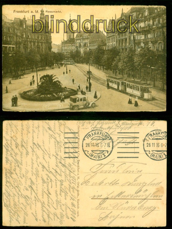 Hessen Frankfurt a.M. sw-AK Rossmarkt 1916 Feldpost nach Nürnberg Karte gelaufen mit Feldpost aus Frankfurt 26.11.1916 nach Nürnberg Erhaltung siehe Scan