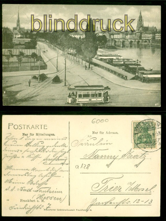 Hessen Frankfurt sw-AK Teilansicht 1906 nach Trier Karte gelaufen aus Bad Nauheim 2.10.1906 nach Trier Bug oben links Erhaltung siehe Scan