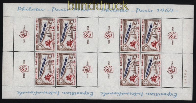 Frankreich Mi # 1480 Philatelic 1964 postfrischer Kleinbogen Ausstellung Philatelic Paris (III) postfrischer Kleinbogen Erhaltung siehe Scan