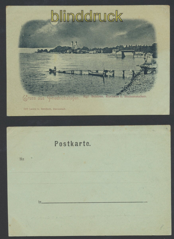 Baden-Württemberg Gruss aus Friedrichshafen Mondschein-AK Schloss, Kurhaus und Badeanstalten ungebraucht Karte nicht gelaufen Erhaltung siehe Scan