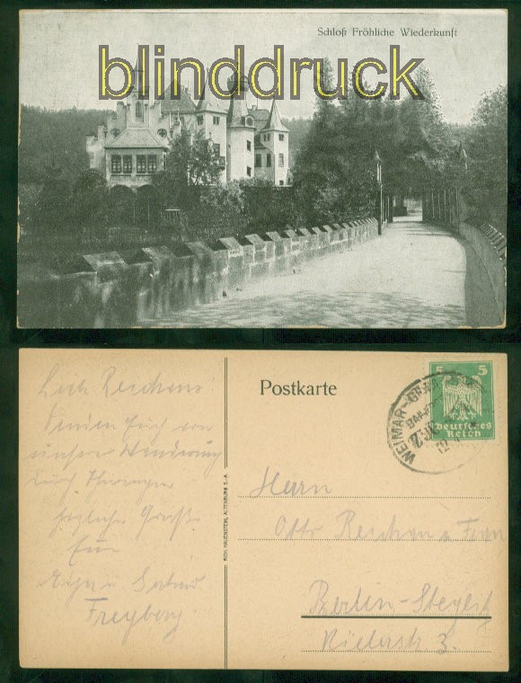 Thüringen Fröhliche Niederkunft Schloss sw-AK Bahnpost 1924 Karte gelaufen mit Bahnpost Weimar - Gera Zug 434 12.4.1924 nach Berlin Erhaltung siehe Scan