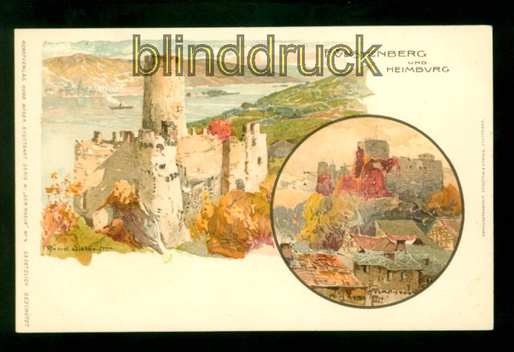 Rheinland-Pfalz Fürstenberg und Heimburg farb-AK Künstler-AK ungebraucht Karte nicht gelaufen Kunstverlag Hugo Moser, Stuttgart Serie A: "Der Rhein " No. 4 Erhaltung siehe Scan