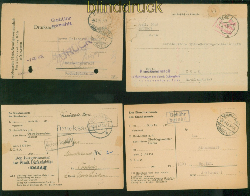 Alliierte Besetzung Gebühr bezahlt 10 Belege alles abgebildet kleines Lot von 10 Gebühr bezahlt Belegen unterschiedliche Stempel und Vermerke Erhaltung siehe Scan