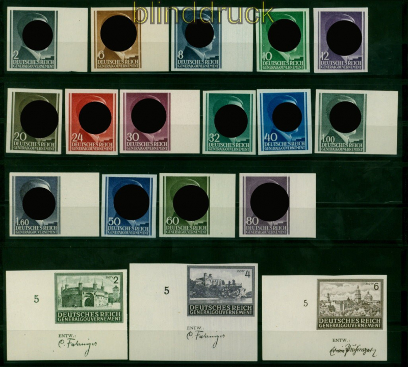 Generalgouvernement Mi # 71/75 U, 77/81 U, 86 U, 88 U, 110/12 U und 113/15 U postfrisch ungezähnt 18 ungezähnte Marken postfrisch einwandfreie Erhaltung siehe Scan