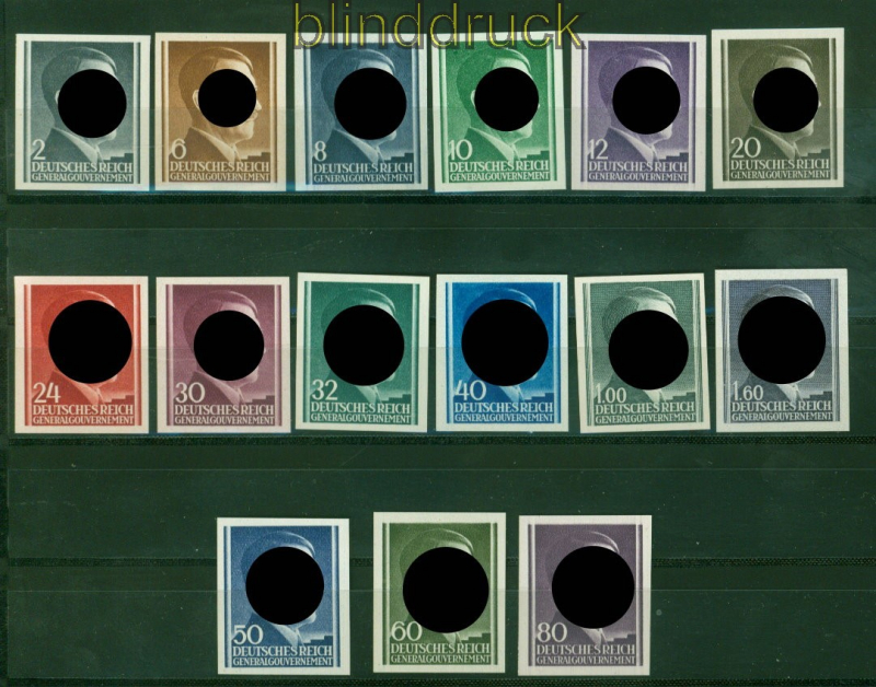 Generalgouvernement Mi # 71/75 U, 77/81 U, 86 U, 88 U und 110/12 U postfrisch ungezähnt 15 ungezähnte Marken postfrisch einwandfreie Erhaltung siehe Scan