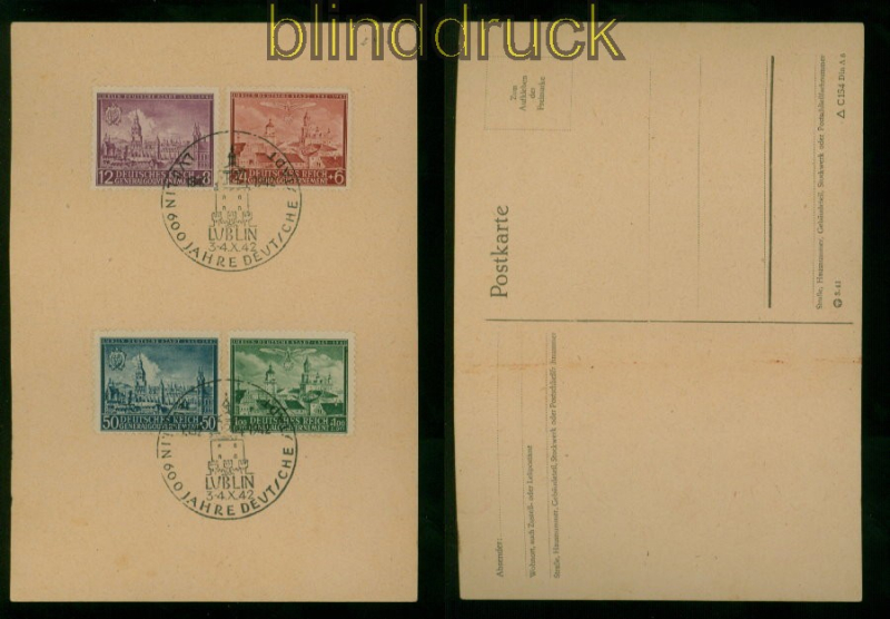 Generalgouvernement Mi # 92/95 Lublin 600 Jahre SSt. auf Vorlageblatt 600 Jahre Lublin komplette Ausgabe gestempelt mit Sonderstempel auf Vorlagekarte Erhaltung siehe Scan
