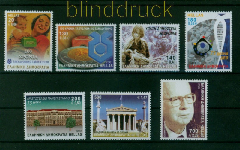Griechenland Mi # 2062/68 postfrisch Jahrestage und Ereignisse Jahrestage und Ereignisse 2001 komplette Ausgabe in Doppelnominale postfrisch Erhaltung siehe Scan