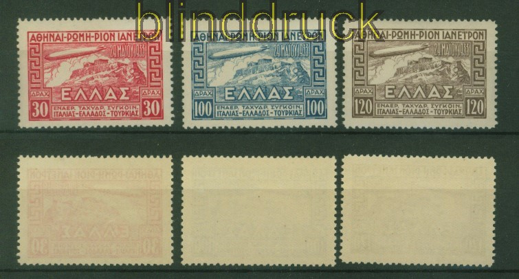 Griechenland Mi # 352/54 postfrisch Italienfahrt Luftschiff Graf Zeppelin Italienfahrt des Luftschiff Graf Zeppelin komplette Ausgabe postfrisch Erhaltung siehe Scan