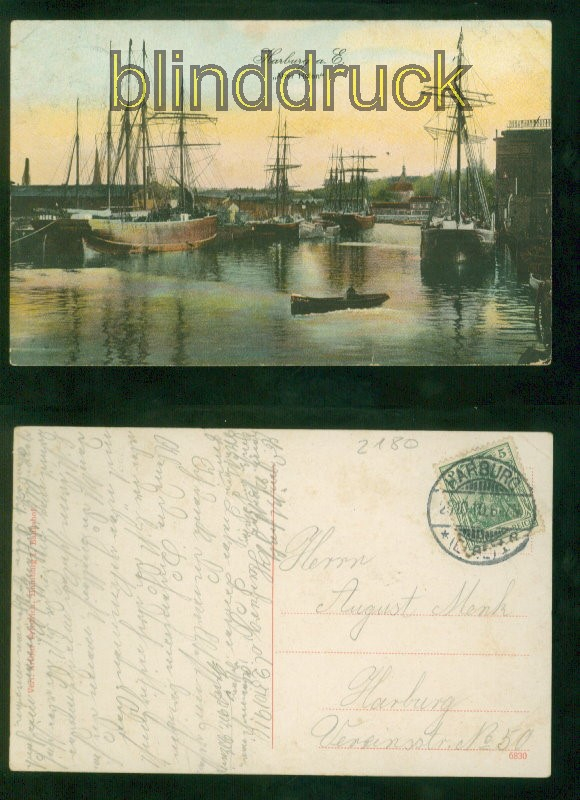 Hamburg Harburg a. E. farb-AK Alter Hafen Ortspostkarte 1910 Karte gelaufen als Ortspostkarte Harburg 26.10.1910 Erhaltung siehe Scan