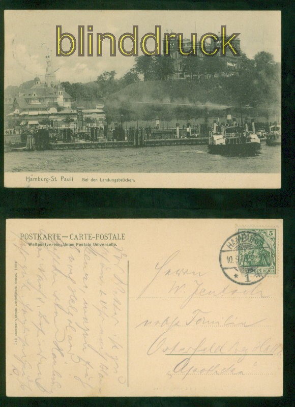 Hamburg St. Pauli sw-AK bei den Landungsbrücken 1905 nach Osterfeld Karte gelaufen aus Hamburg 10.9.1905 nach Osterfeld Erhaltung siehe Scan