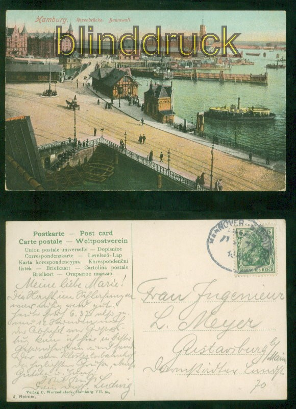 Hamburg farb-AK Rosenbrücke und Baumwall 1915 nach Mainz Karte gelaufen aus Hamburg 10.6.1916 nach Mainz Erhaltung siehe Scan