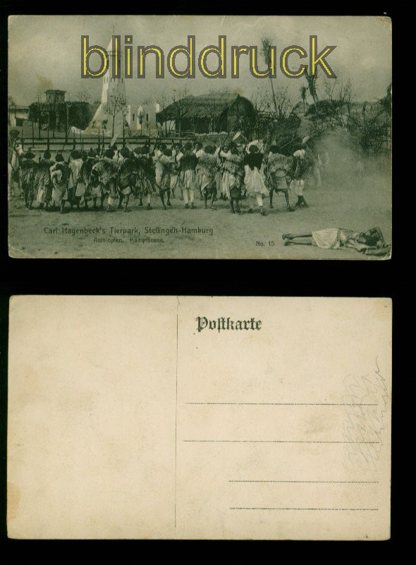 Hamburg sw-AK Carl Hagenbeck´s Tierpark Hamburg-Stellingen ungebraucht Aethopien Kampfszene Karte nicht gelaufen Erhaltung siehe Scan