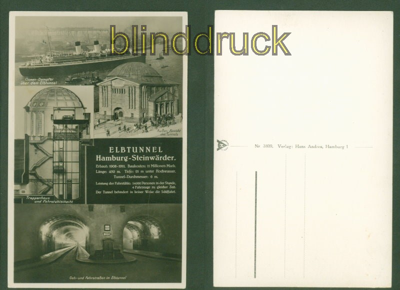 Hamburg sw-AK Elbtunnel vier Ansichten ungebraucht Karte nicht gelaufen Erhaltung siehe Scan