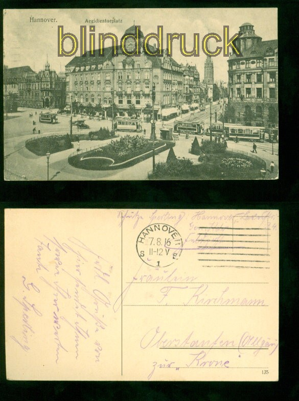 Niedersachsen Hannover sw-AK Aegidientorplatz Feldpost 1916 nach Oberstaufen Karte gelaufen mit Feldpost aus Hannover 7.8.1916 nach Oberstaufen Erhaltung siehe Scan