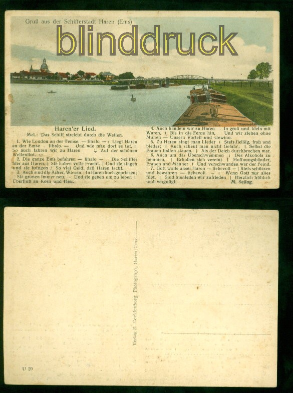 Niedersachsen Haren farb-AK Gruss aus der Schifferstadt Harener Lied ungebraucht Karte nicht gelaufen Erhaltung siehe Scan